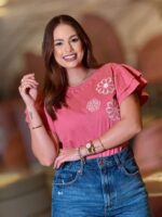Blusa Manga Curta Bordada