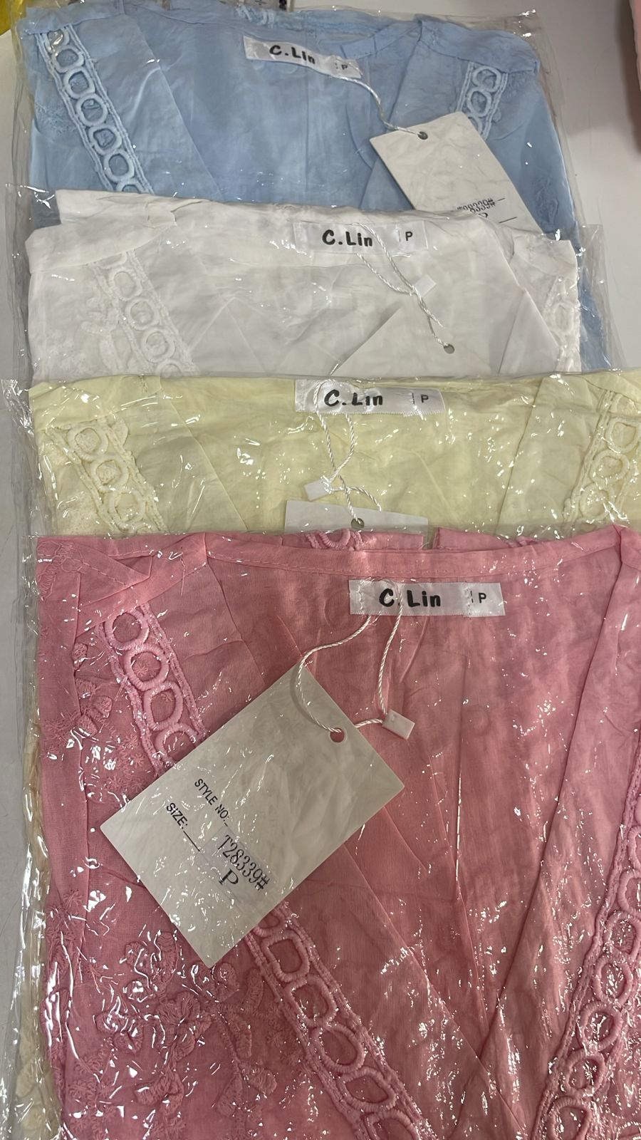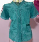 Blusa confeccionada em cambraia de algodão com aplicações de bordado ,botões funcionais.