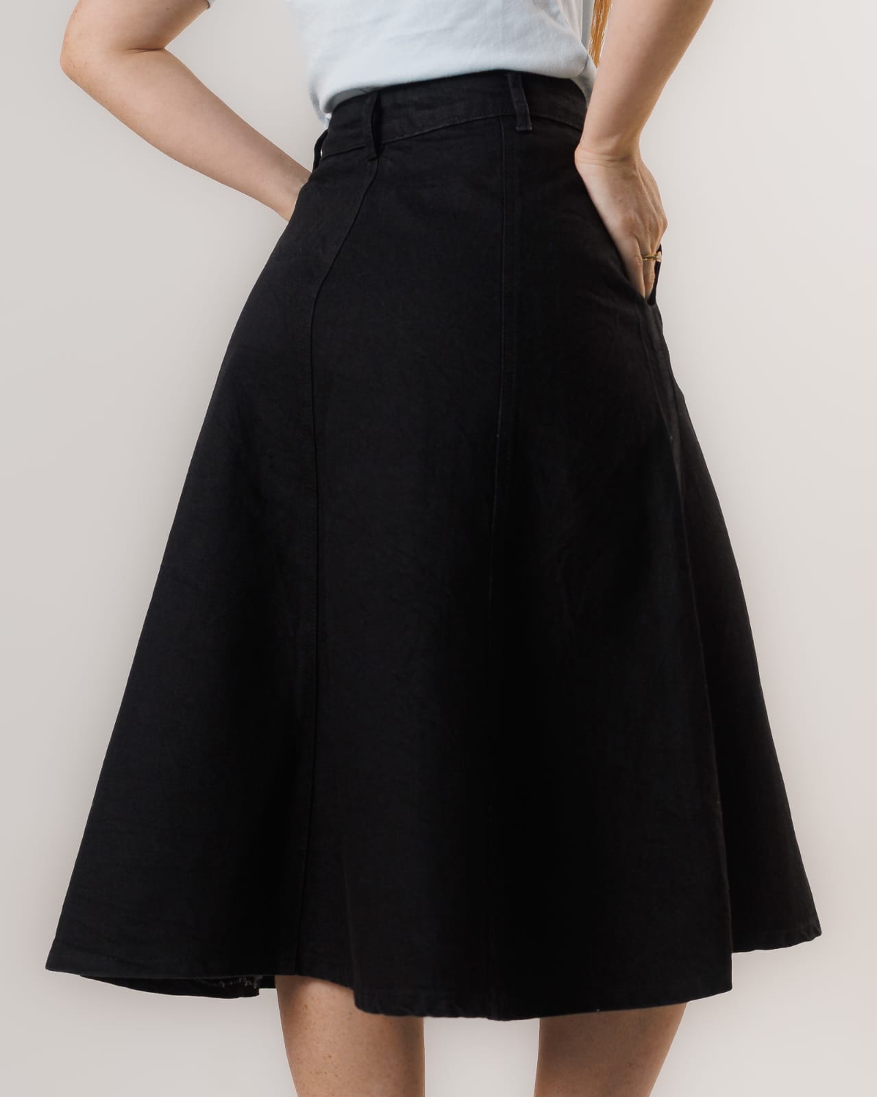 confeccionada em jeans 100%,bolsos funcionais nas laterais.