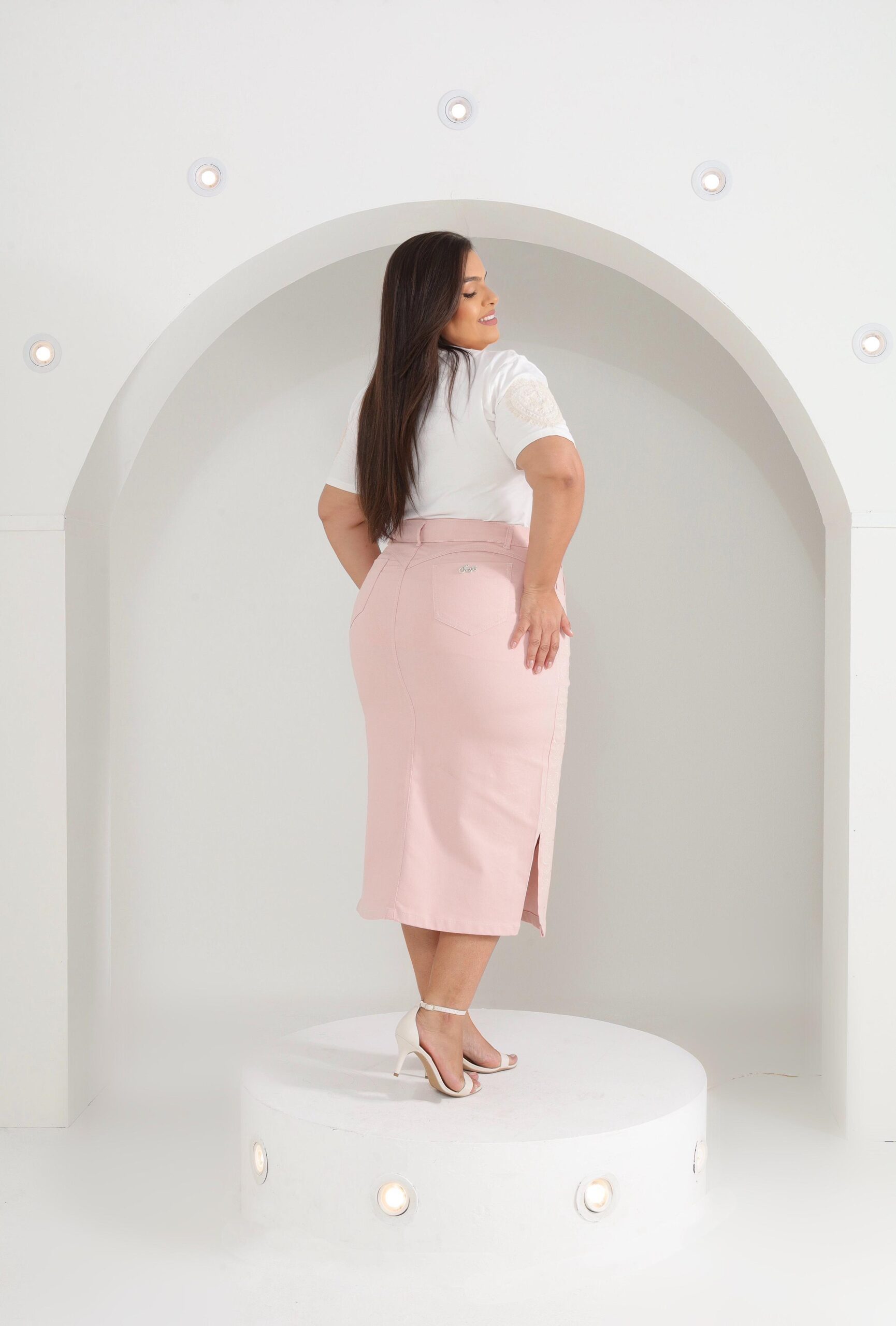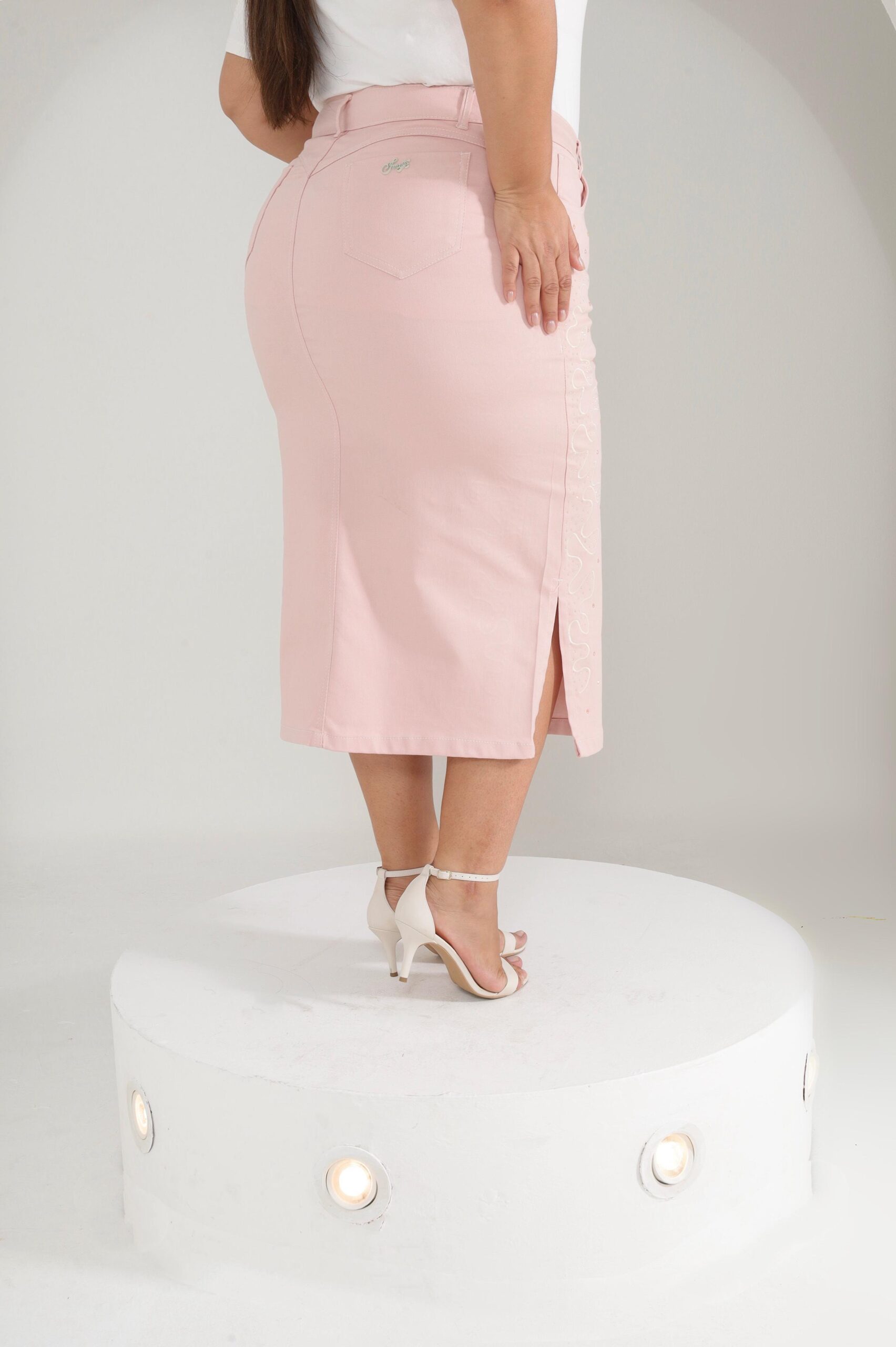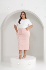 Encante-se com a delicadeza e o charme da Saia Rosa com Brilhos da Efraim Moda Evangélica, desenvolvida para mulheres que buscam elegância sem abrir mão do conforto. Confeccionada em brim com lycra, o modelo secretaria valoriza as curvas com um caimento impecável e confortável. Os detalhes com aplicações de brilhos trazem um toque sofisticado e feminino, enquanto as fendas laterais oferecem mobilidade e um visual moderno. Ideal para composições refinadas e estilosas em ocasiões especiais ou no dia a dia.