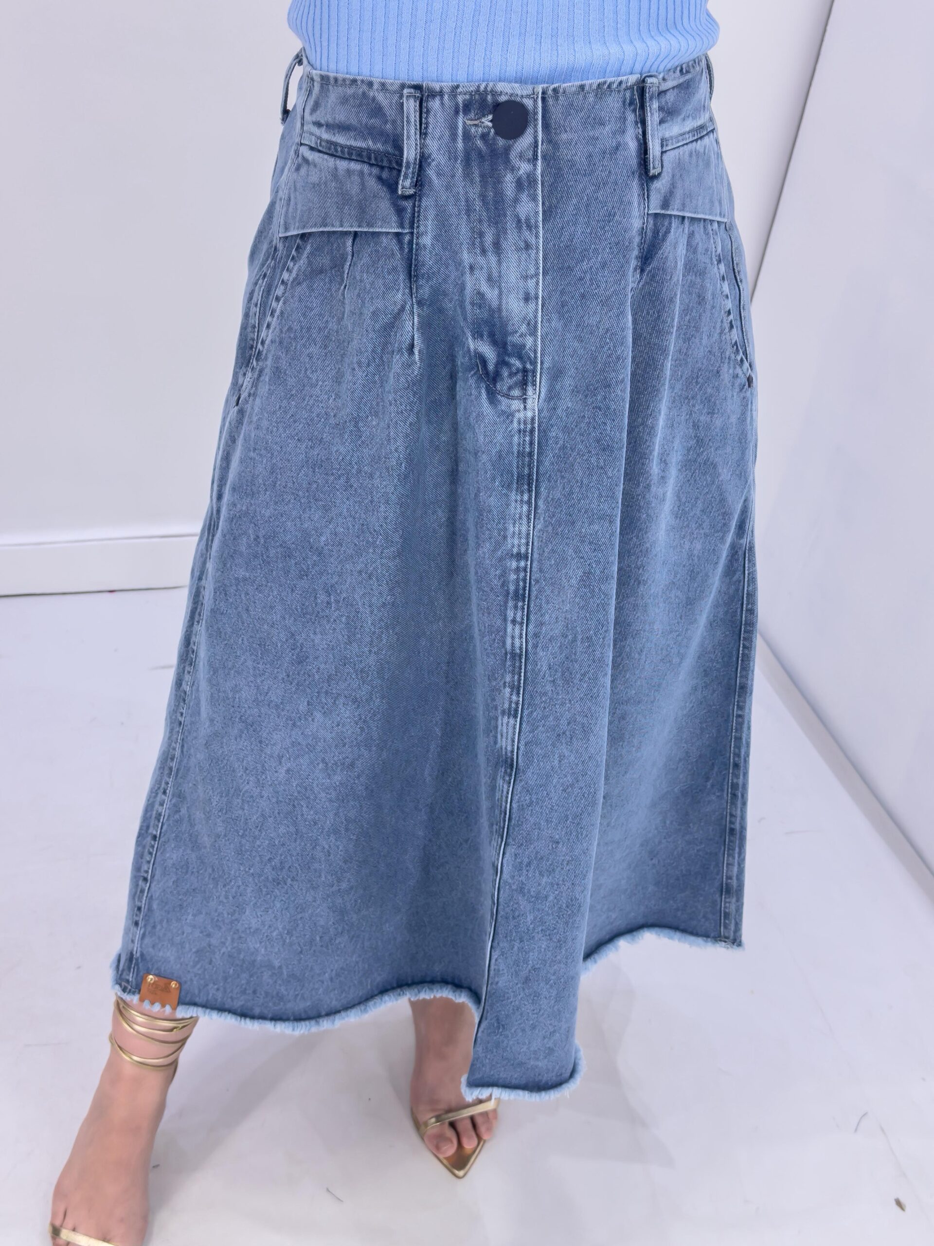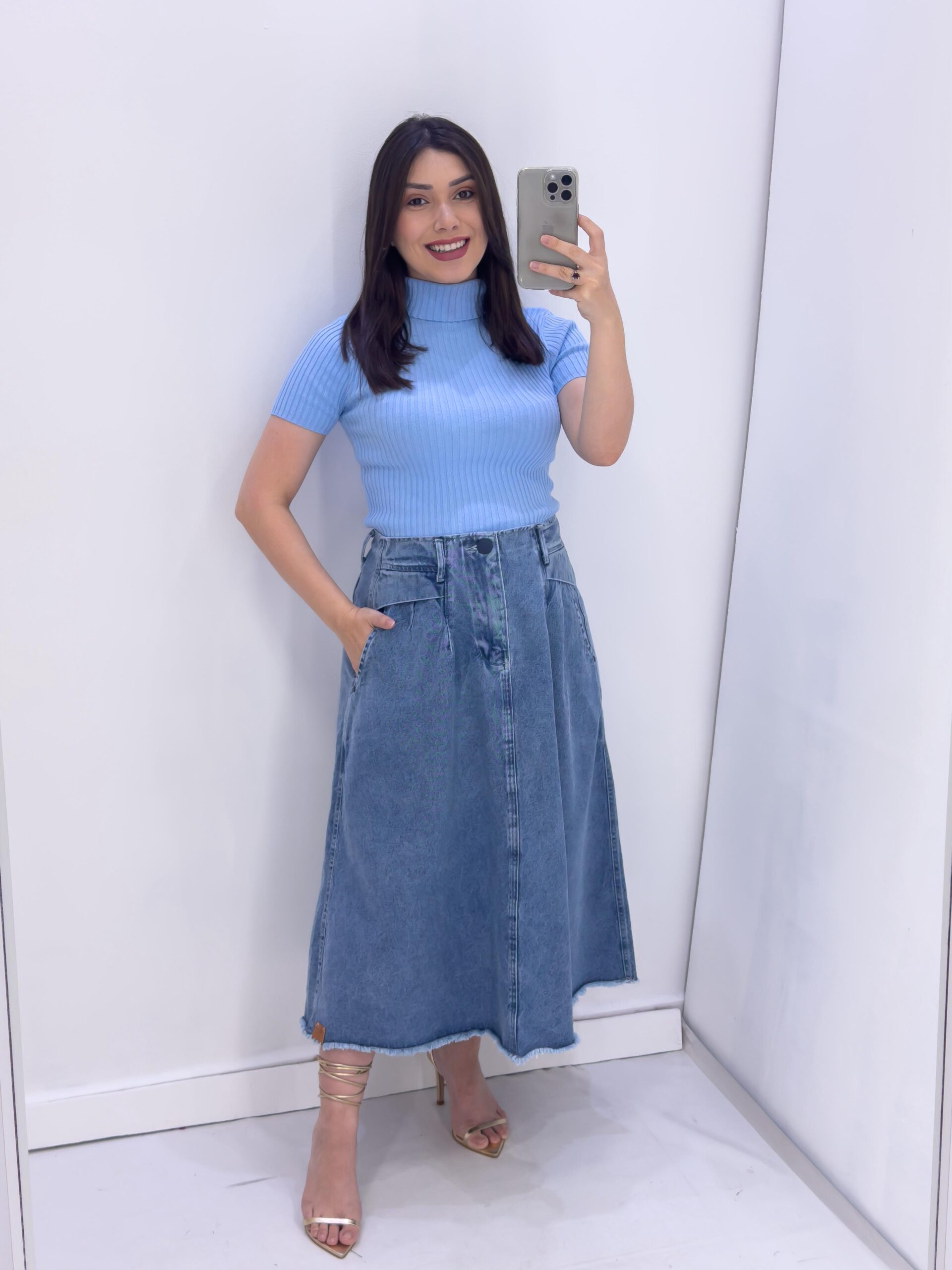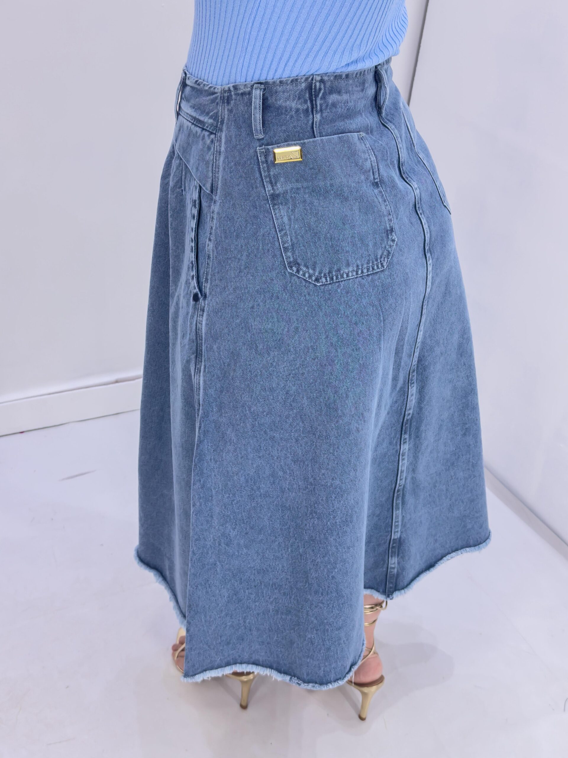 A Saia Sofia Zagut une conforto, modernidade e um caimento impecável. Confeccionada em jeans 100% algodão com toque extra macio, oferece leveza e suavidade no uso, além de um visual elegante e atemporal.